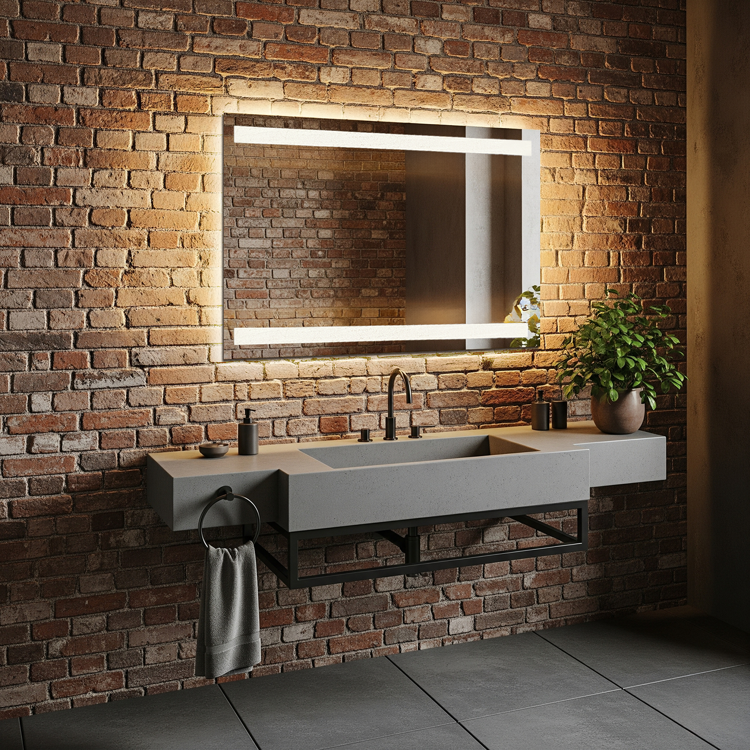 Paryż to model lustra stworzony dla osób poszukujących dekoracyjnego, ale jednocześnie dyskretnego oświetlenia. Lustro wyróżnia się dwoma poziomymi pasami LED, umieszczonymi w górnej oraz dolnej części tafli. Pasma światła nie dotykają krawędzi, dzięki czemu tworzą elegancki efekt zawieszenia i dodają wnętrzu wyjątkowego charakteru. Ostre narożniki podkreślają nowoczesną formę lustra.