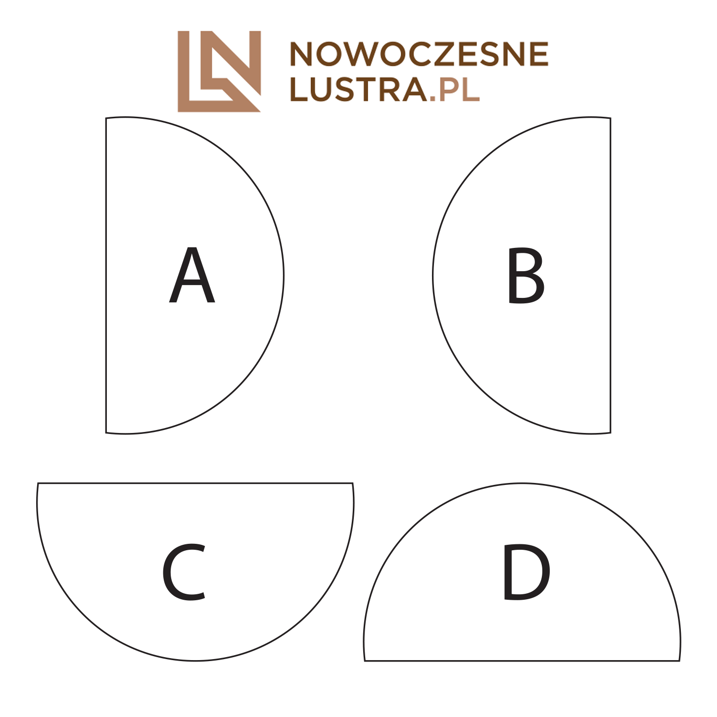 Model Murcja zamawiany jest na wymiar w zakresie od 50×85 do 90×153 cm, więc sprawdzi się także jako lustro półokrągłe duże. Do wyboru są położenia A, B, C i D (obrót co 90°). Wieszaki klejone do tafli umożliwiają montaż na kołki rozporowe gdzie lustro zachowuje ok. 2 cm dystansu od ściany. Możliwy jest też bezpośredni montaż na klej. Certyfikowane podzespoły i 2-letnia gwarancja producenta dopełniają całości. Bez ramy łatwo utrzymać taflę w czystości, a szlifowana krawędź jest przyjemna w dotyku. Murcja pasuje do wnętrz klasycznych i nowoczesnych.