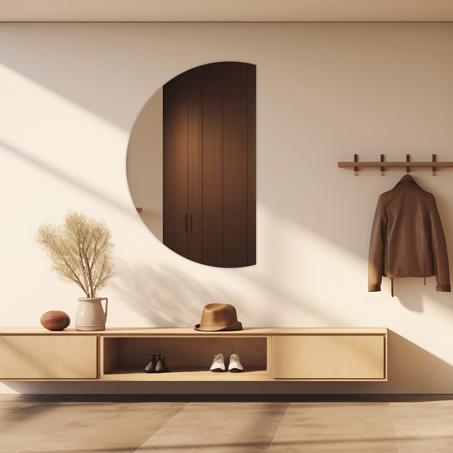 Murcja to klasyczne półokrągłe lustro zaprojektowane dla osób, które lubią miękką linię łuku, ale oczekują czegoś więcej niż standardowe 180°. Kształt przechodzi ponad półokrąg, dzięki czemu tafla wygląda lżej i bardziej otwarcie, a odbicie optycznie podnosi wnętrze. To sprawdzony wybór jako lustro łazienkowe półokrągłe nad umywalkę, do przedpokoju, salonu czy gabinetu beauty – tam, gdzie lustra półokrągłe mają być eleganckim, stałym detalem.